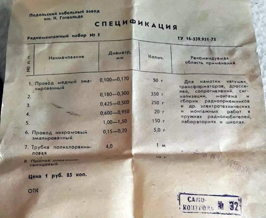 набор № 5 выпускался предположительно с 1985 года Подольским кабельным