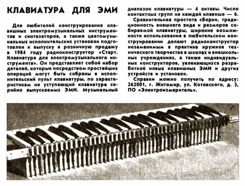Радиоконструктор "Старт-9069" (Клавиатура для ЭМИ) выпускало с 1984 года Житомирское ПО "Электроизмеритель".