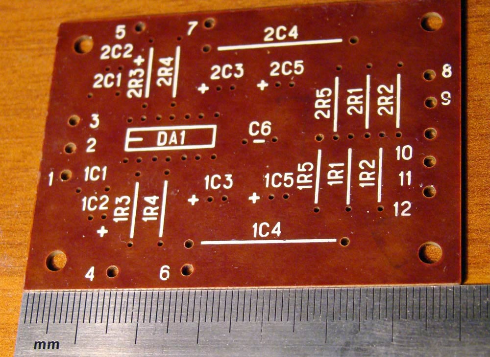 шумов -56 дБ. Напряжение питания 12...18 В. Габариты платы усилителя -
