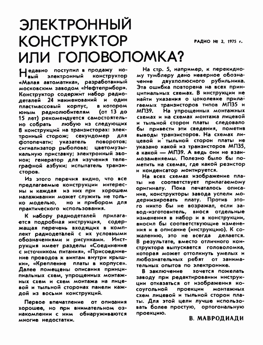 конструктор "Малая автоматика" выпускался с 1973 года Московским заводом