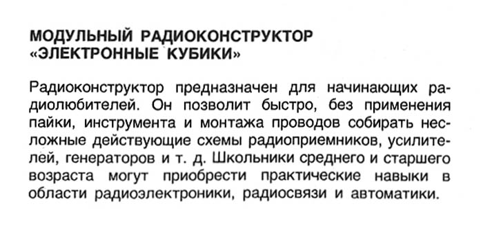радиоконструктору "Электронные кубики" МРК-2.