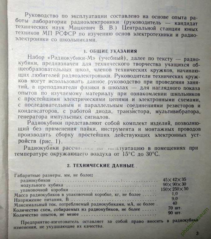 Набор "Радиокубики-М" выпускался предположительно с 1986 года. С помощью набора можно собрать несколько действующих электронных устройств, соединяя кубики между собой по приведённым в инструкции по эксплуатации схемам и рисункам.