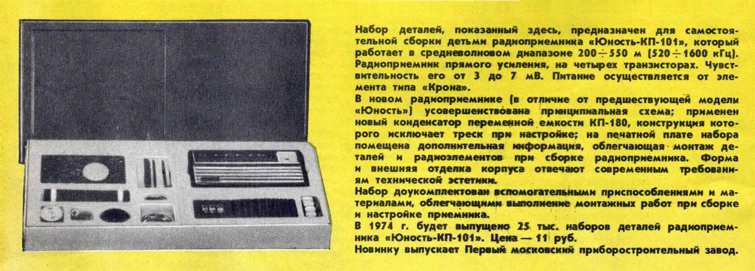 Статья о приёмнике "Юность КП-101" в журнале Радио