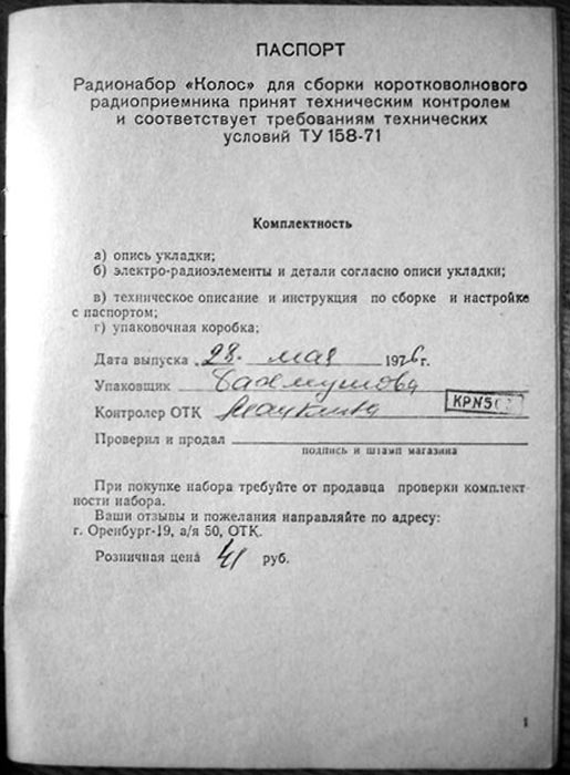 для сборки радиоприёмника "Колос" с 1976 года выпускал Оренбургский аппаратный