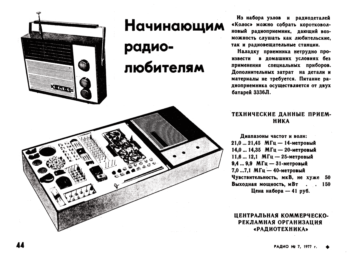 завод. Из набора можно собрать приёмник, принимающий вещательные АМ и любительские