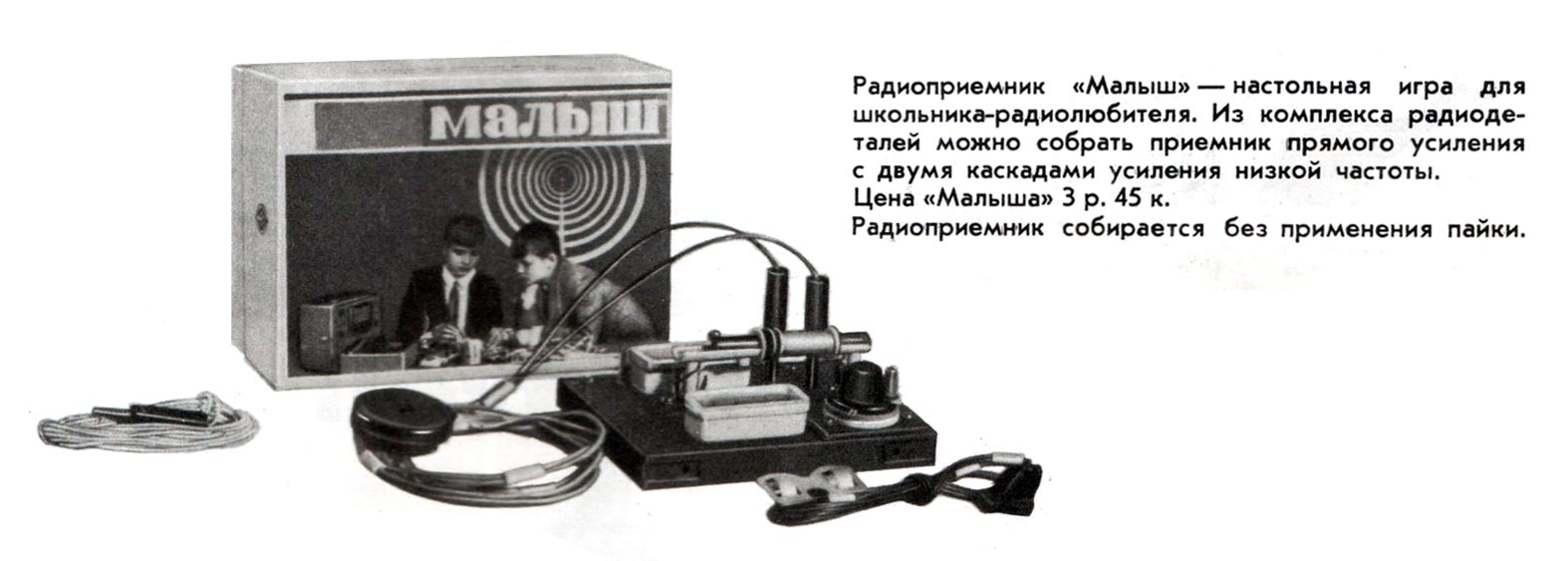 Радиоприёмник "Малыш" из радиоконструктора подготовлен к выпуску в 1971 году. Информация и фото из журнала "Новые Товары" № 9 за 1971 год.