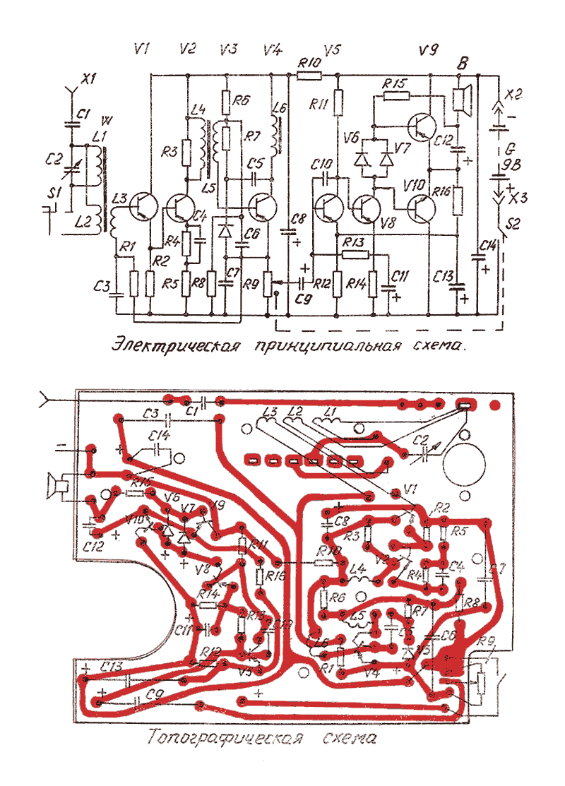 НК на шести транзисторах служит для сборки приёмника прямого усиления,