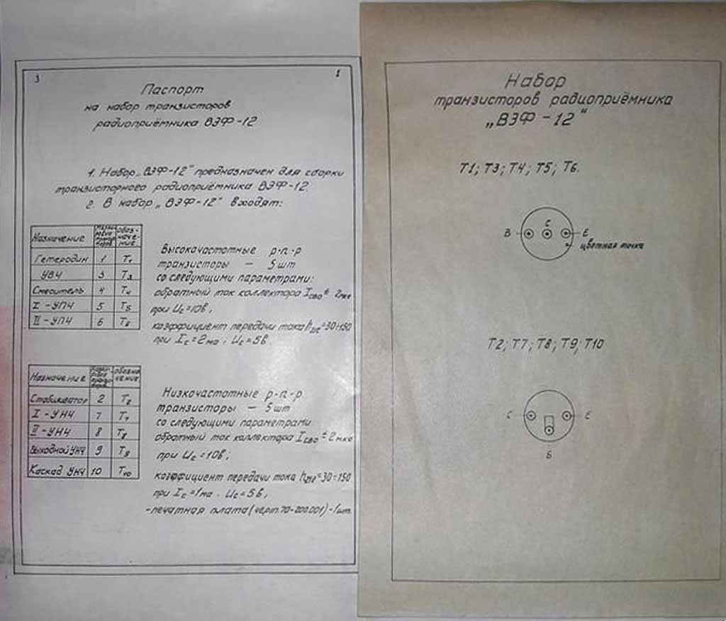 для радиоприёмника "ВЭФ-12" и 10 транзисторов (5 ВЧ и 5 НЧ) и предназначен
