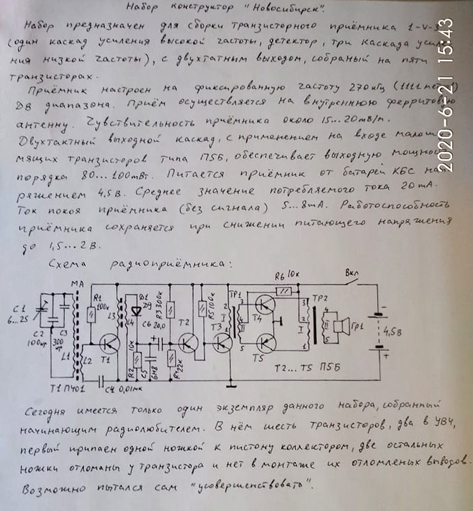 Некоторые материалы и фотографии по радиоприёмнику коллекционера из Бердска