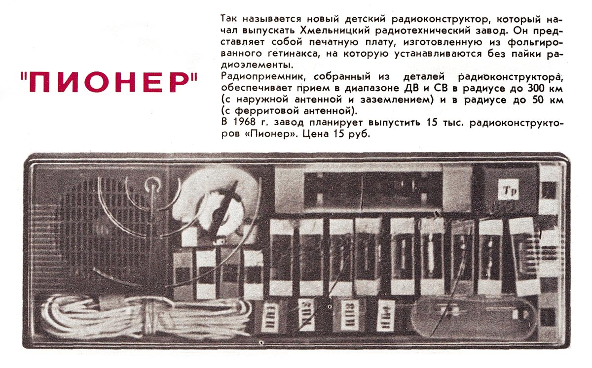 Детский радиоконструктор "Пионер" выпускал с 1967 года Хмельницкий радиотехнический завод.