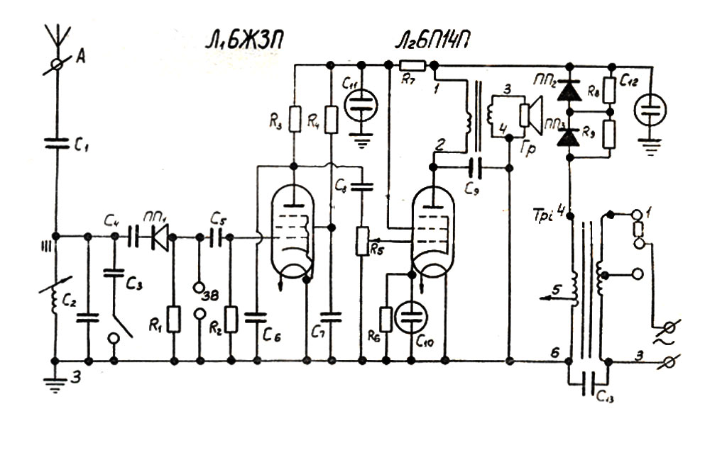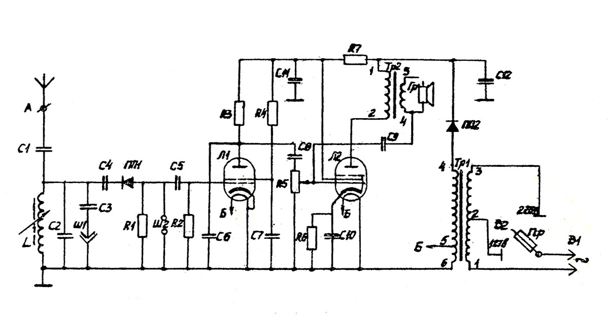 двухлампового приёмника прямого усиления по схеме 0-V-2 (детекторный с