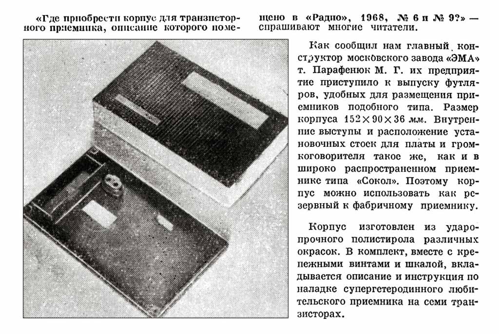 приёмника, ставшего основой набора в "Радио" № 6 и № 9 за 1968 год.