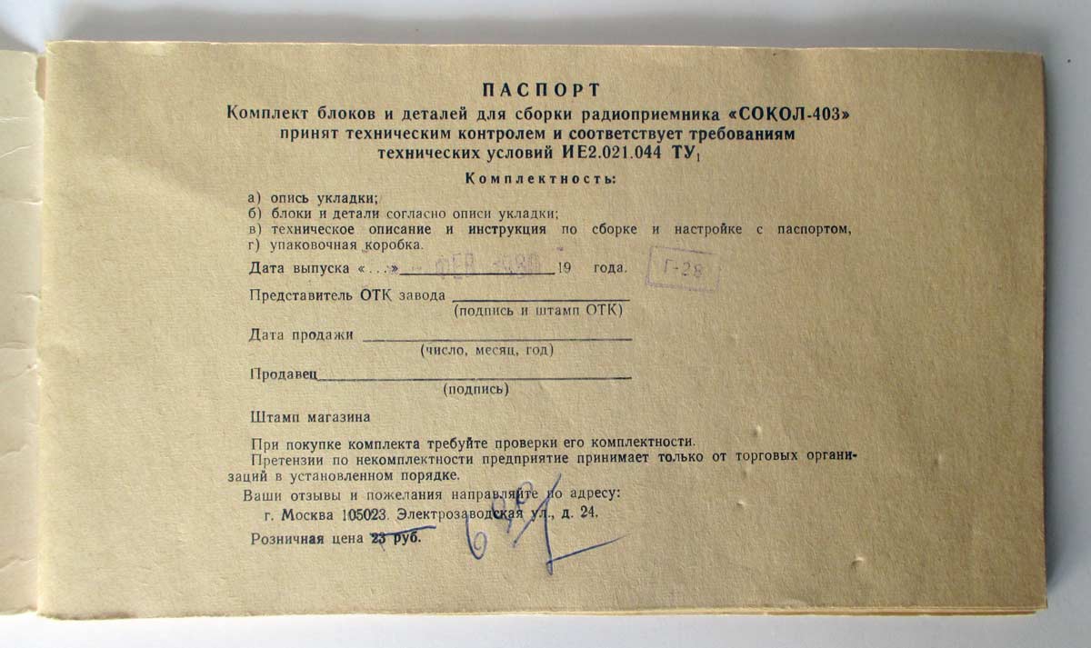 заводского радиоприёмника "Сокол-403" на сайте.