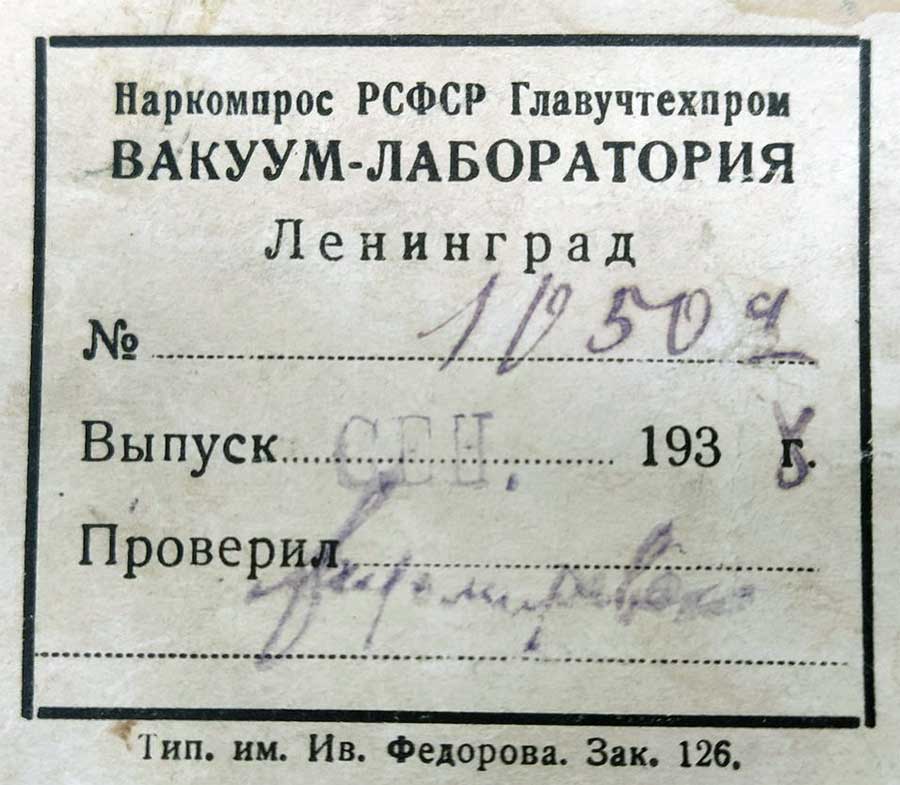трубок. Ленинград. 1938 г. Для определения спектра, длин световых волн