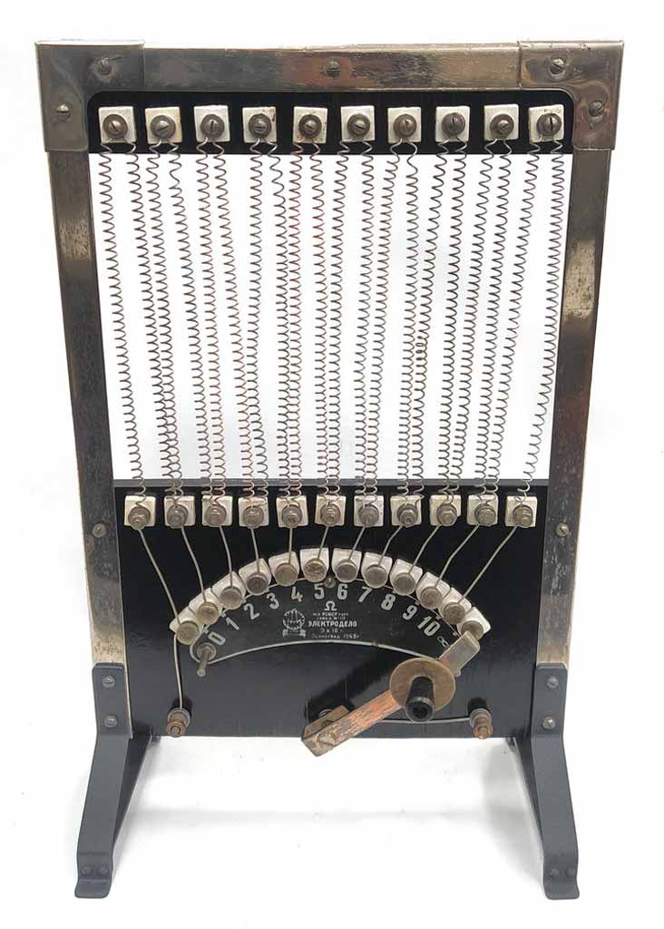 Реостат рычажный (демонстрационный). Ленинградский завод № 10 "Электродело". 1949 год. Для ступенчатой регулировки сопротивления от 1 до 10 Ом.