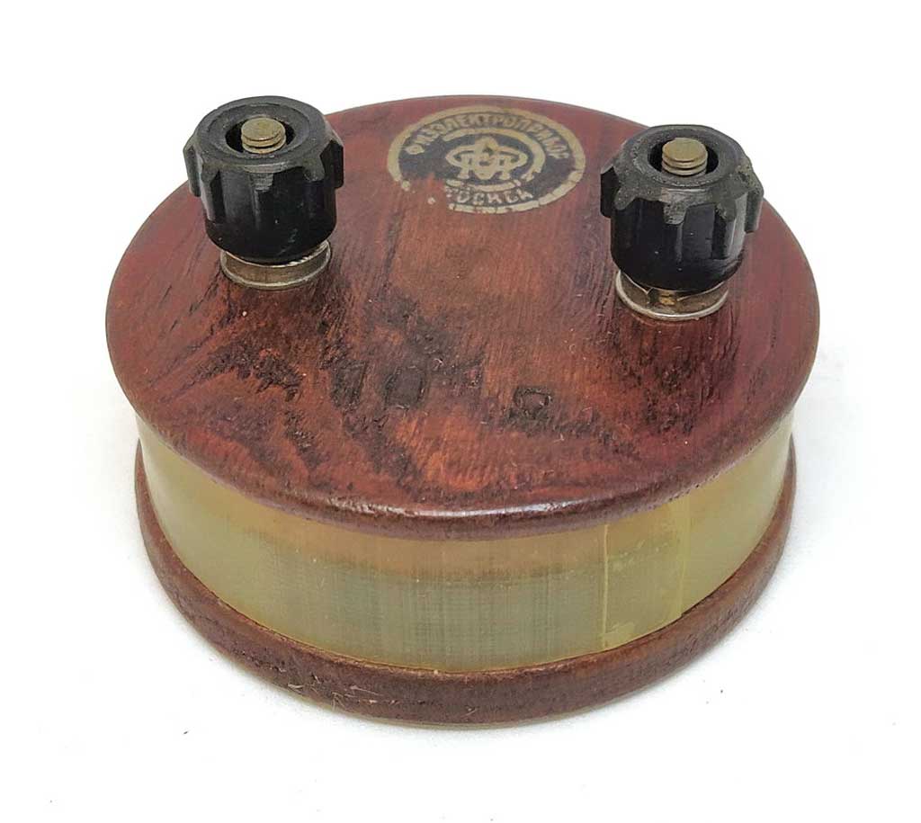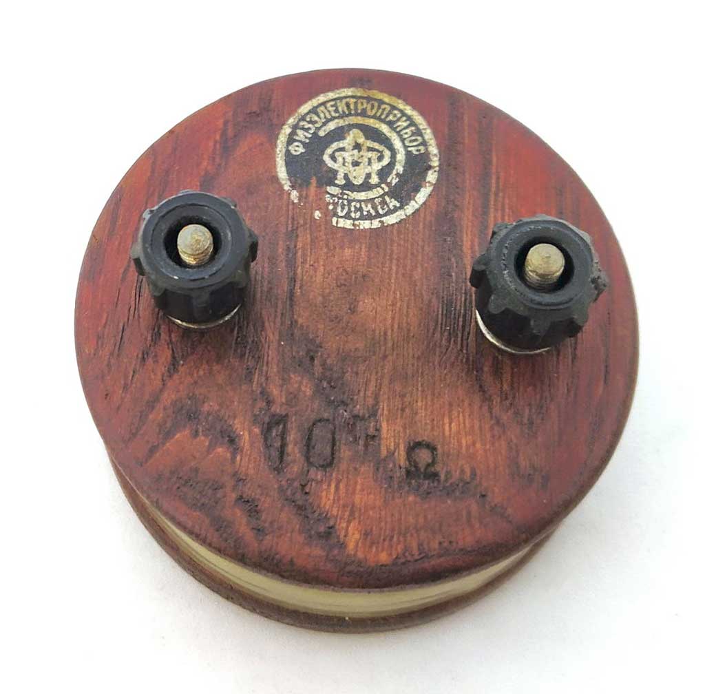Резистор / катушка сопротивления выпускалась возможно с 1951 года Московским заводом "Физэлектроприбор". Имеет сопротивление 10 Ом.