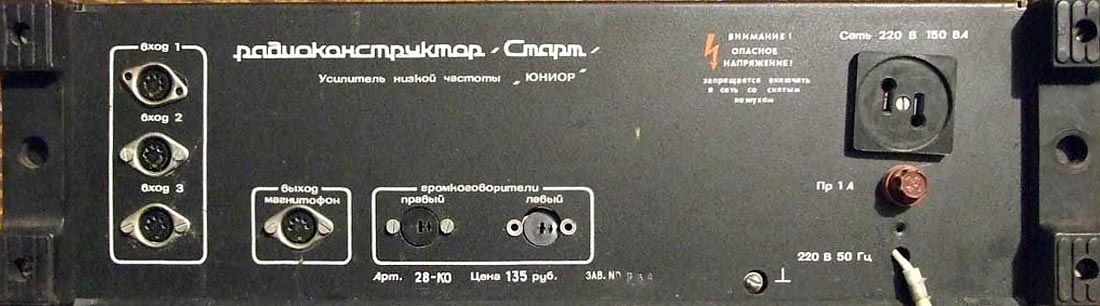 Радиоконструктор "Старт" (Усилитель НЧ "Юниор") выпускался с 1988 года Боярским машиностроительным заводом "Искра". Подробнее в инструкции.