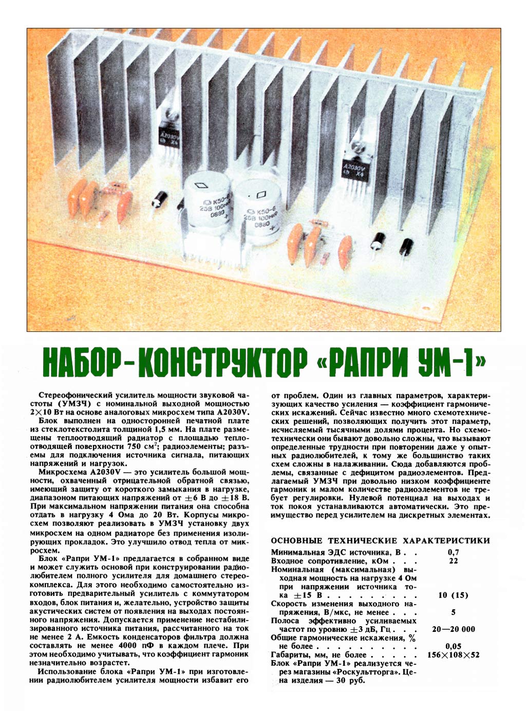 "Рапри УМ-1" (Усилитель мощности) выпускался с 1991 года. Стереофонический