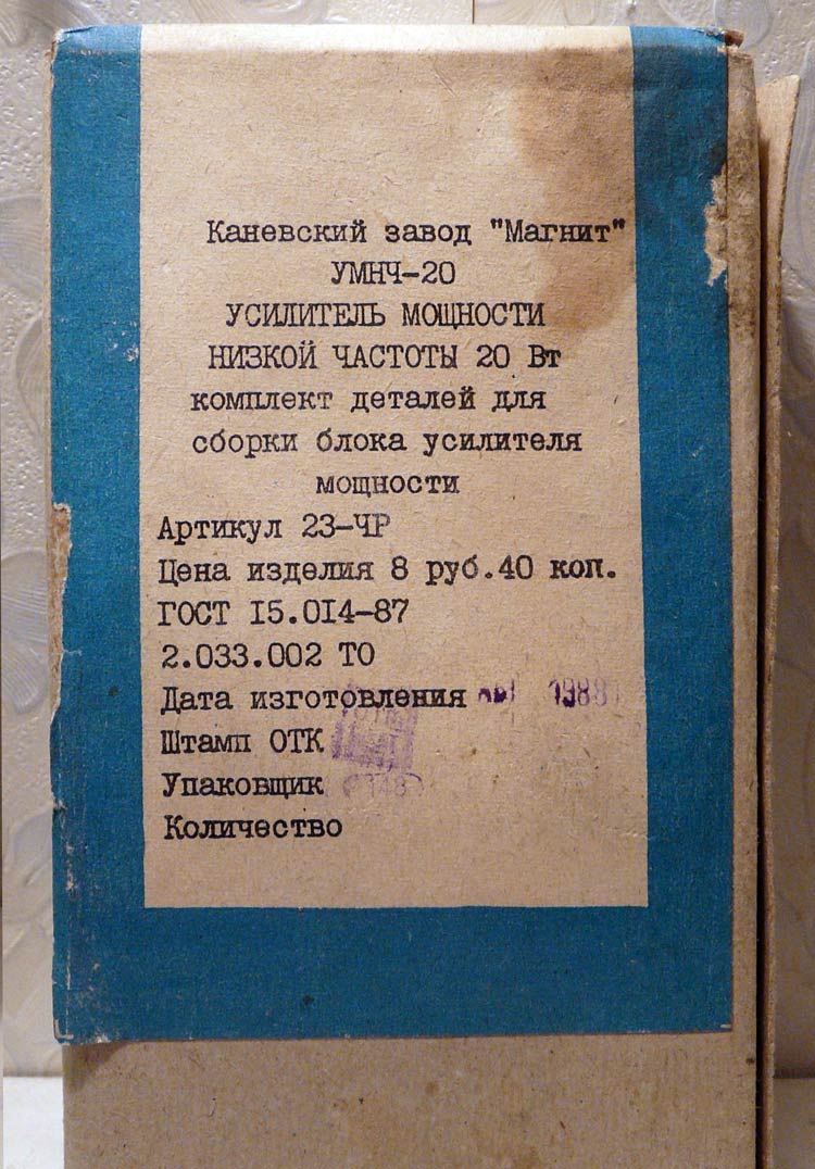"УМНЧ-20" (Усилитель мощности низкой частоты 20 Вт) выпускал с 1988 года