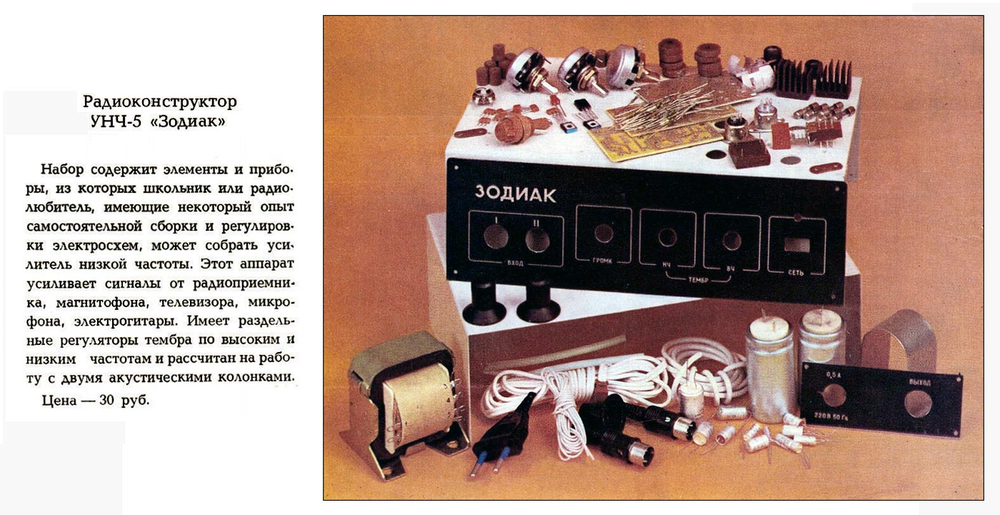 Радиоконструктор "УНЧ-5" (Зодиак) был выпущен небольшой партией в 1984 году. Изготовитель не установлен. Из радиоконструктора можно было собрать монофонический усилитель низкой частоты, с выходной мощностью 5 Вт.