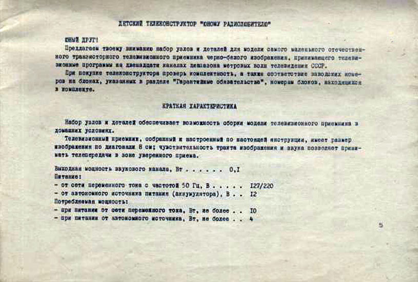 с диапазонами 1-5 и 6-12 каналы. Телеконструкторы выпускались с наименованиями