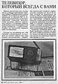 телевизор, работающий в диапазоне МВ. Чувствительность 20 мкВ. Номинальная