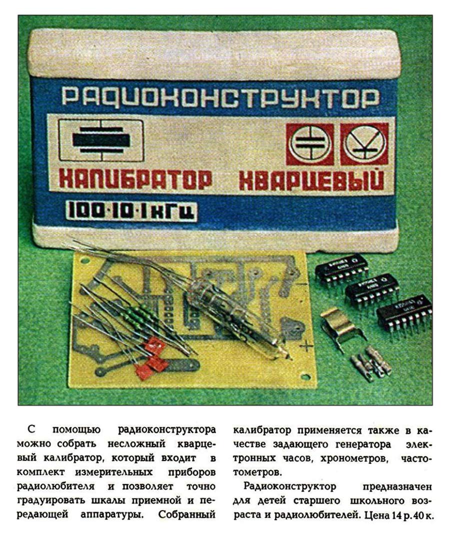 РК "Калибратор кварцевый" выпускал с 1980 года Каменец-Подольский завод "Электроприбор". Позволяет собрать калибратор с частотами 1, 10 и 100 кГц.