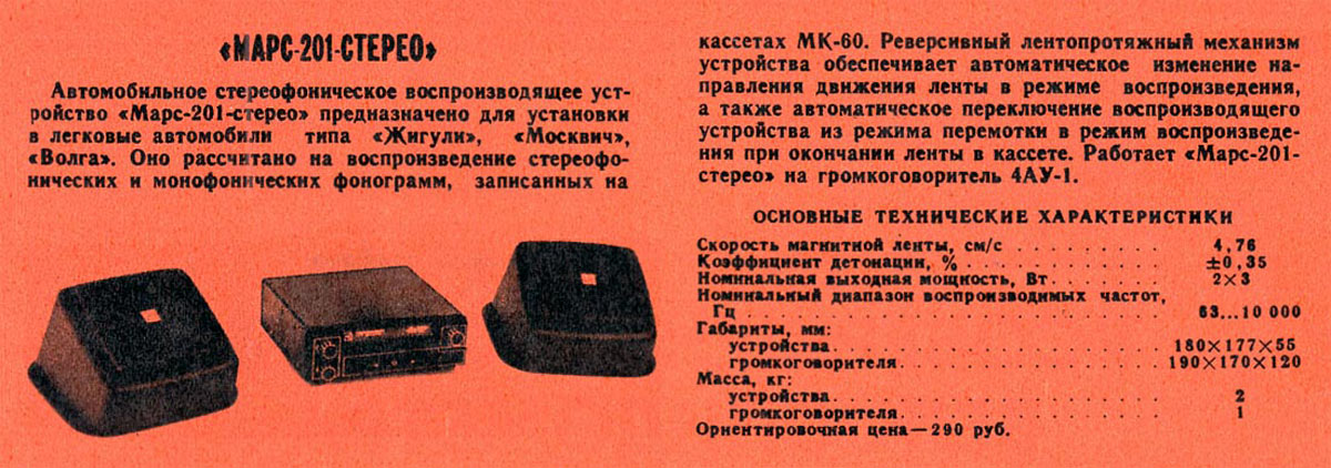 устройство "Марс-201-стерео" выпускалось с 1978 года Ереванским заводом