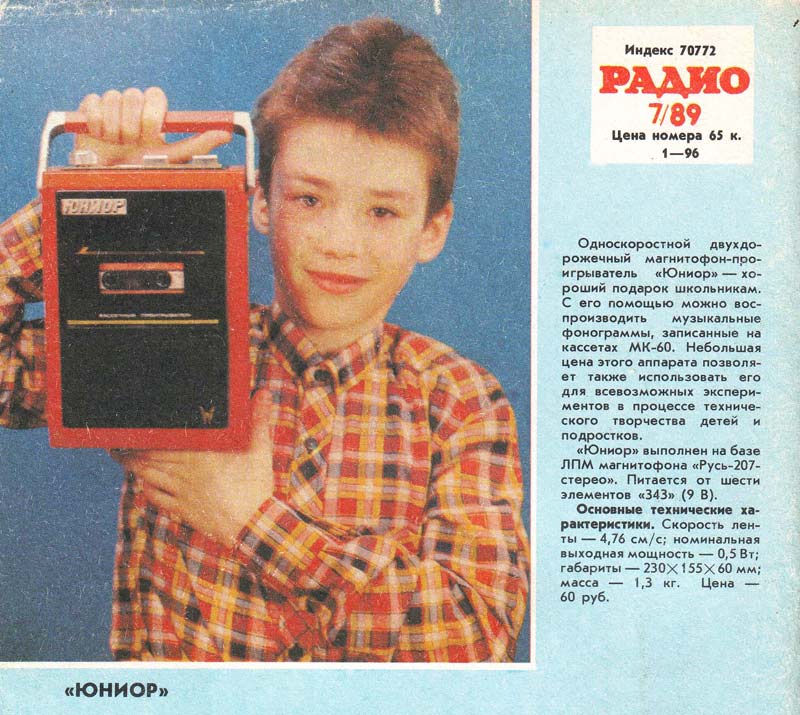 магнитофон-проигрыватель "Юниор" с 1989 года выпускал Рязанский приборный