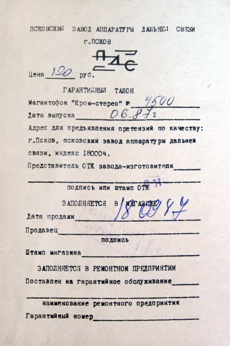 проигрыватель "Кром-Стерео" выпускался с 1987 года "Псковским заводом аппаратуры