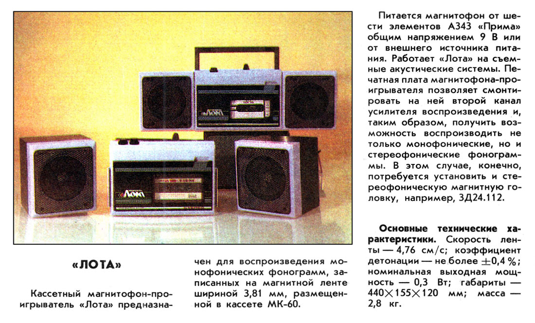 магнитофон-проигрыватель "Лота-Стерео" с 1990 года выпускал Новополоцкий