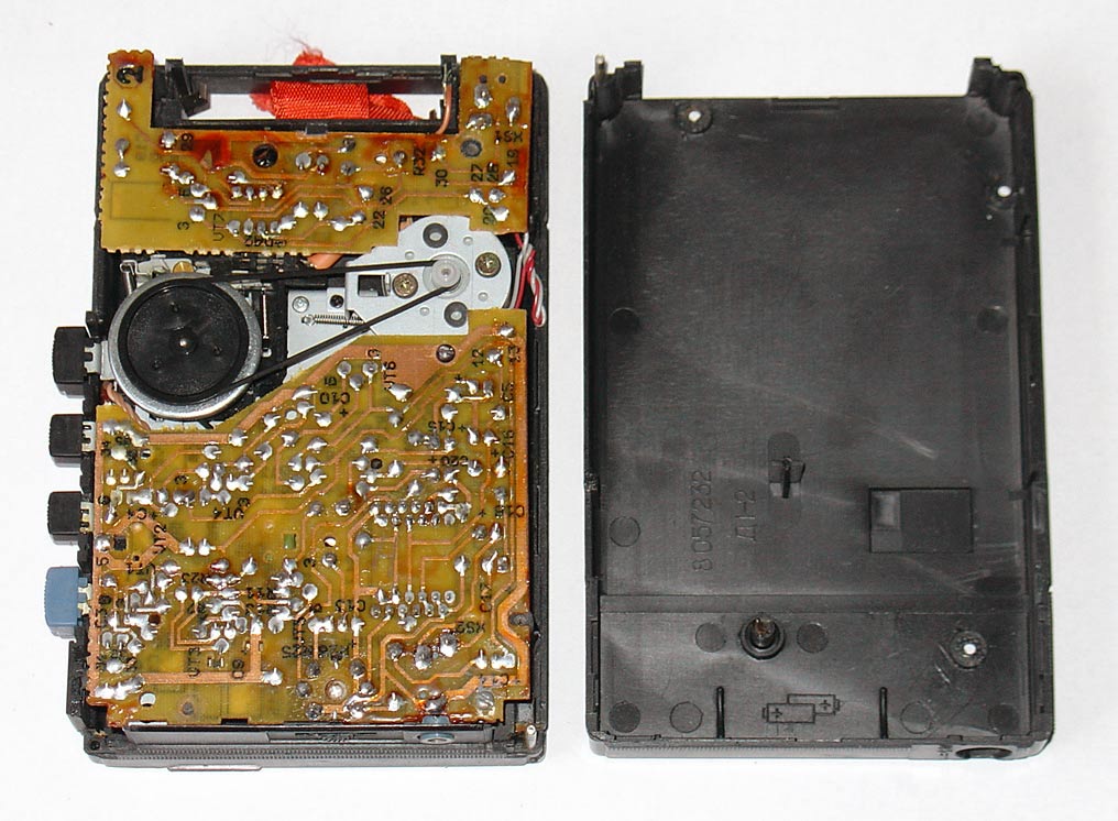 максимальная 2х50 мВт. Габариты магнитофона-проигрывателя - 140х95х38 мм.