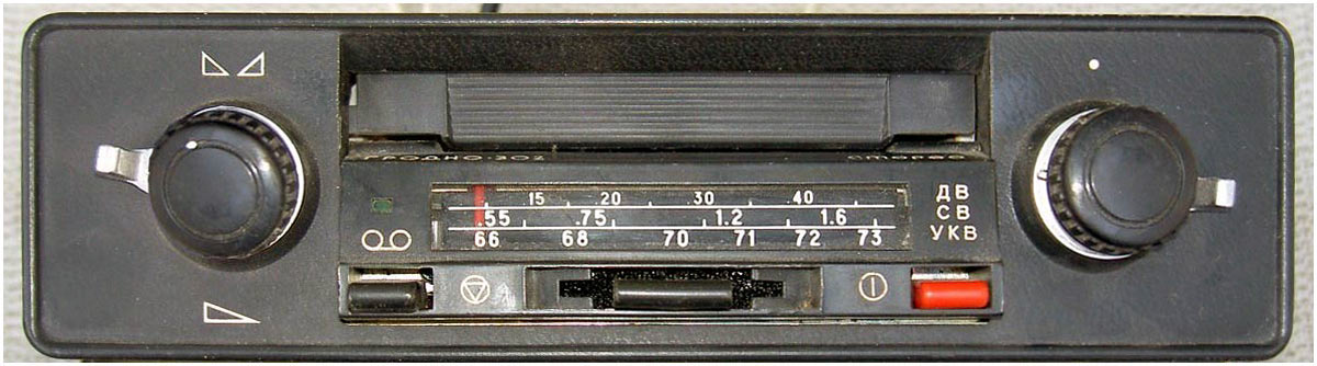 в диапазонах: ДВ, СВ и УКВ. В магнитоле установлена кассетная магнитофонная