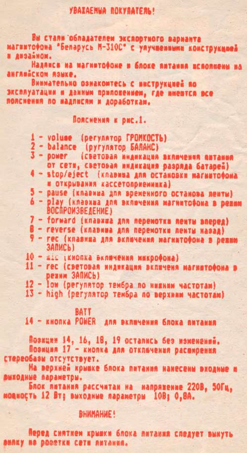 - 421x135x106 мм. Вес 2,1 кг. Магнитофон "Беларусь М-310С" выпускался и