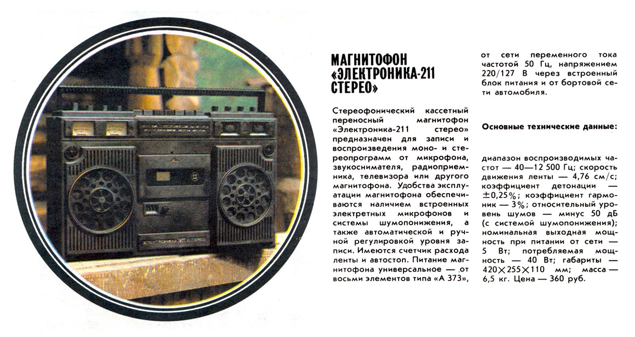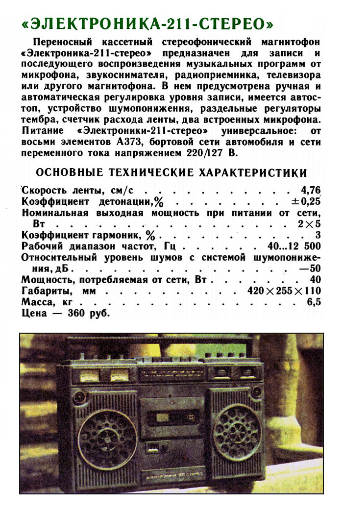 Переносной кассетный магнитофон "Электроника-211-стерео"