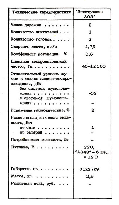 выносной блок питания или от 6 элементов 343. Скорость протяжки ленты 4,76