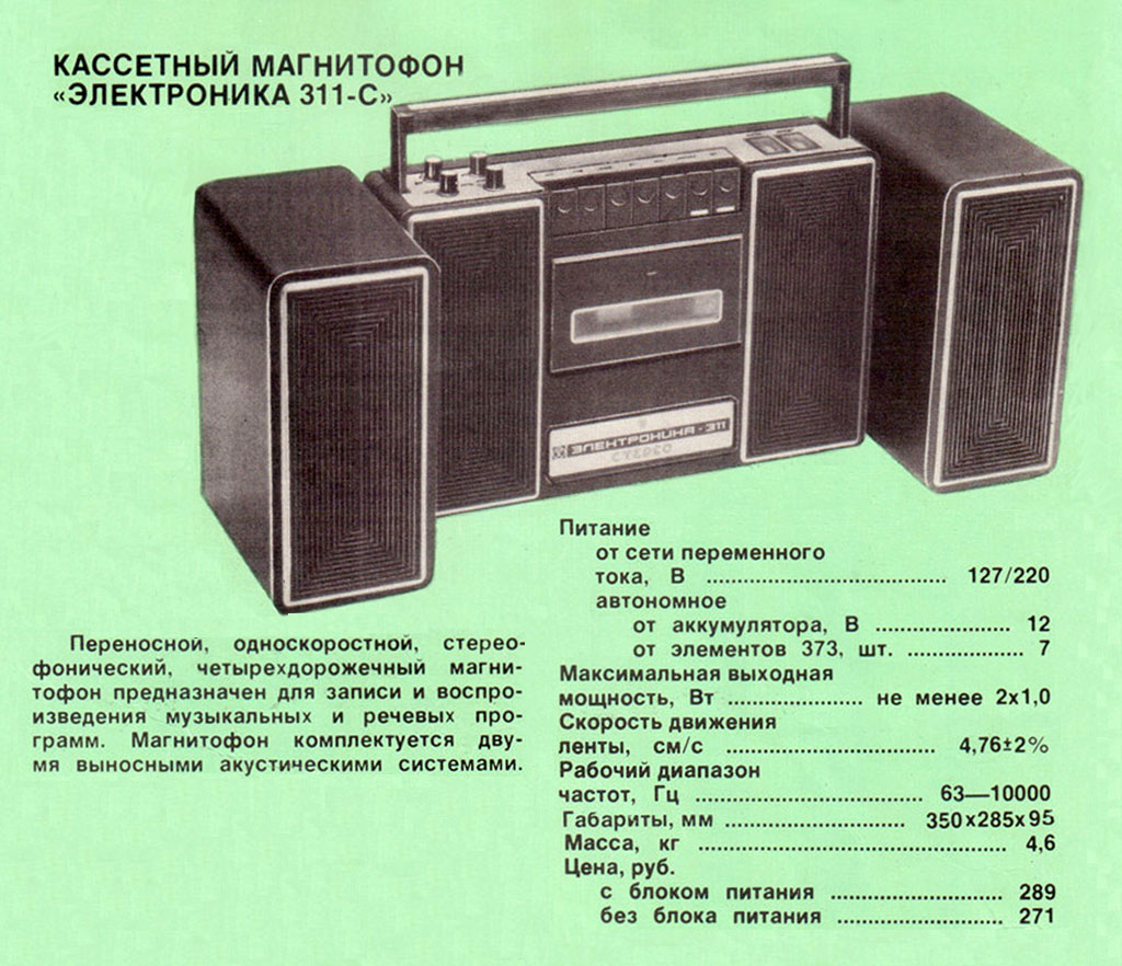 расширения стереобазы в комплекте выносные АС. Магнитофон выпускали в 4-х