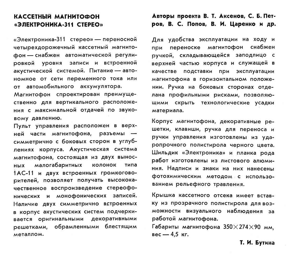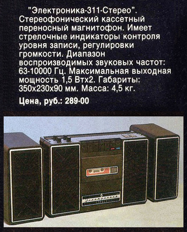 магнитофоны "Электроника-311-стерео" и "Электроника-311А-стерео" соответственно