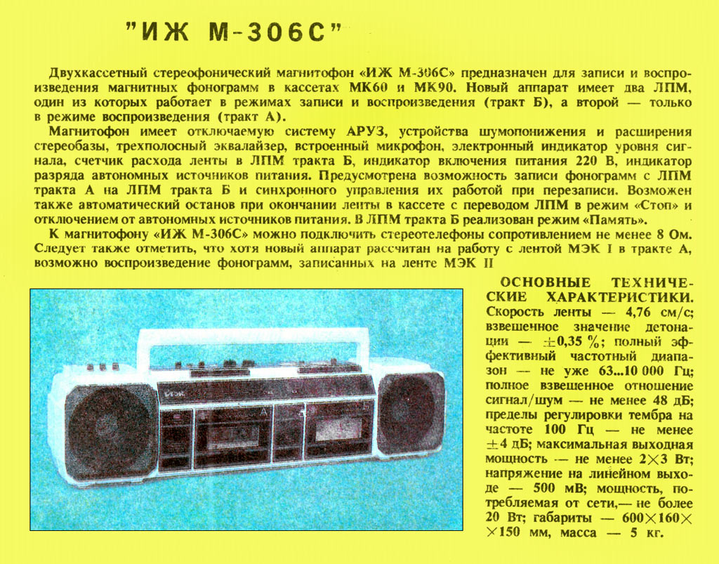 стереофонический магнитофон "ИЖ М-306С" с 1990 года выпускал Ижевский мотозавод.