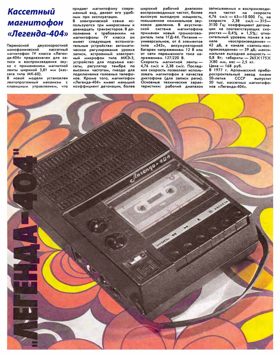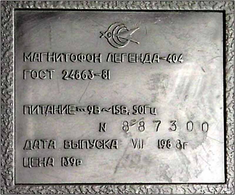 ДВ. С 1989 года магнитофон выпускался под наименованием ''Легенда М-404''.