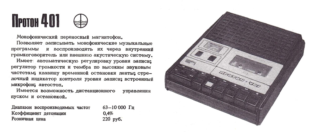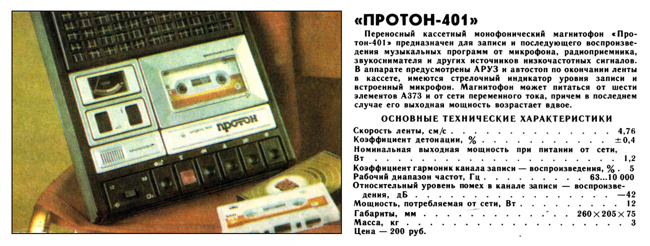 Описание магнитофона "Протон-401" в справочнике