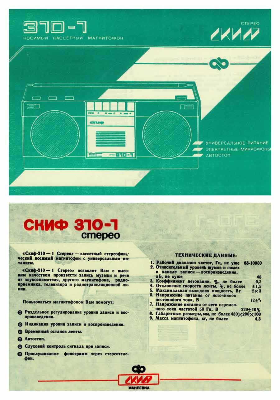 Портативный стереофонический магнитофон "Скиф-310-1 Стерео" предположительно с 1988 года выпускал Макеевский завод "Скиф". Фотографии для сайта предоставил Андрей Мирошниченко.