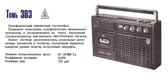 магнитофон "Томь-303" с 1981 года выпускал Томский радиотехнический завод.