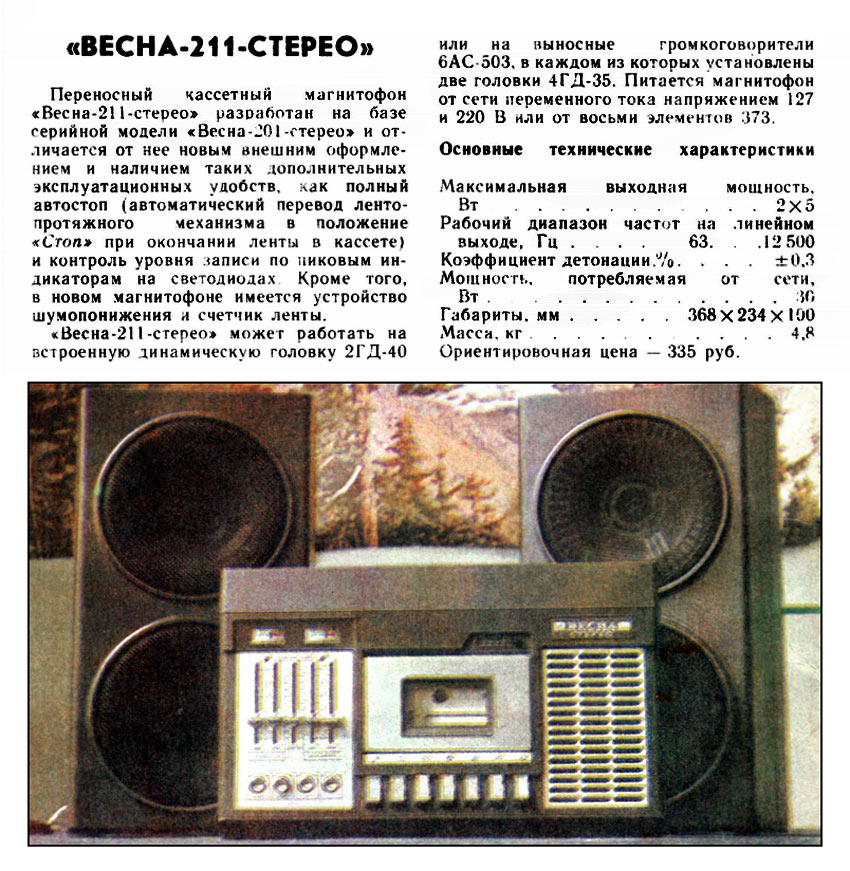 "Весна-211-стерео" с 1978 года выпускал Запорожский электромашиностроительный