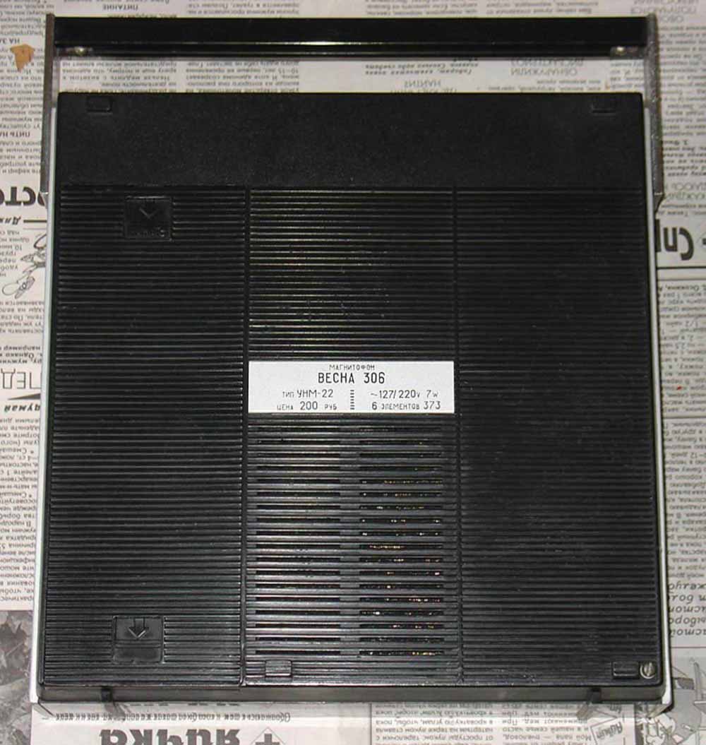 блок питания. Габариты магнитофона "Весна-306" - 242х242х68 мм, его масса