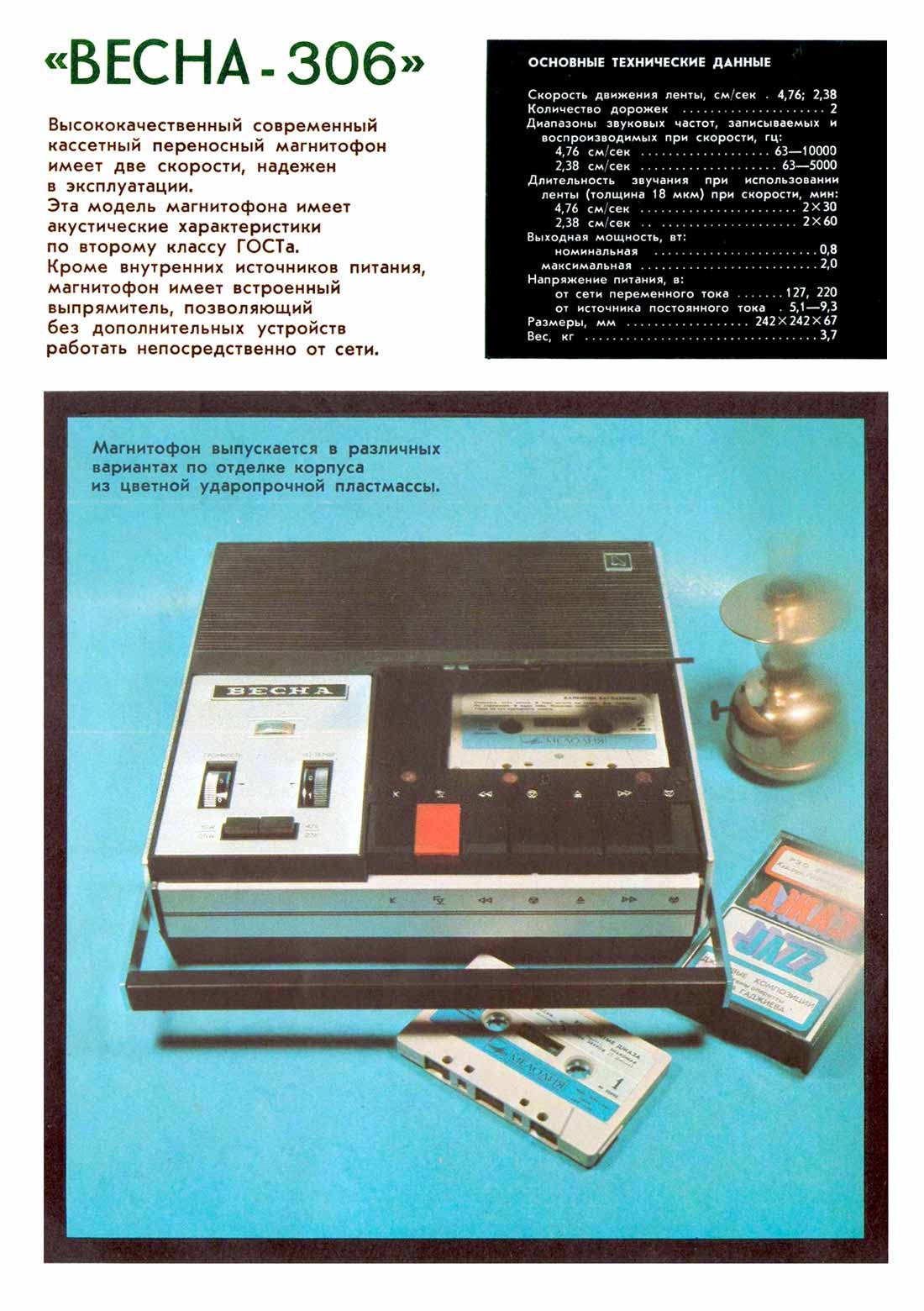 год. Описание магнитофона "Весна-306"