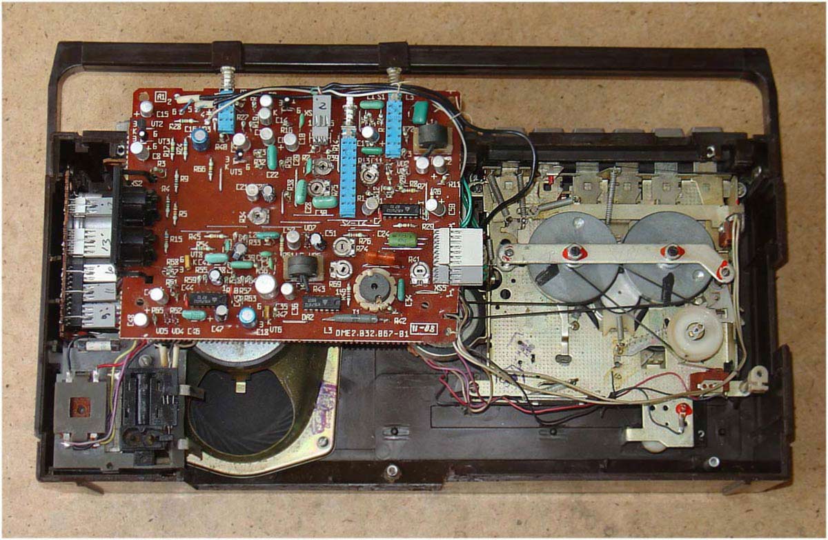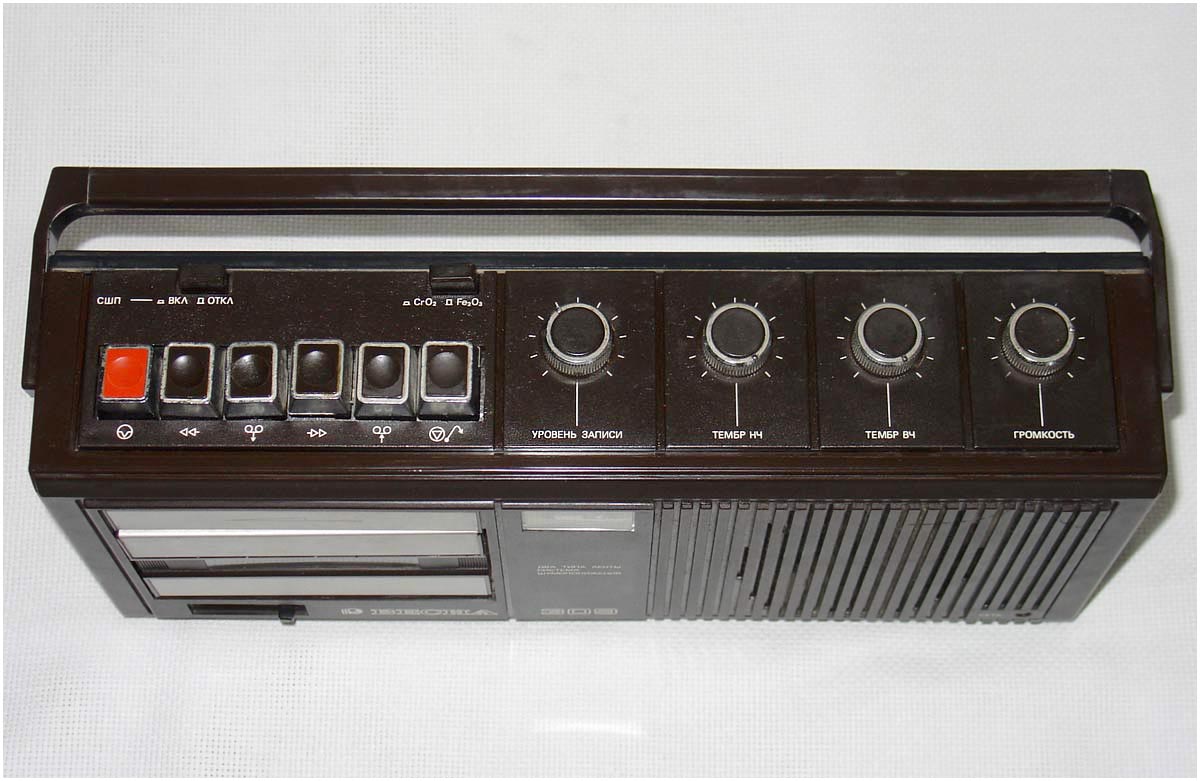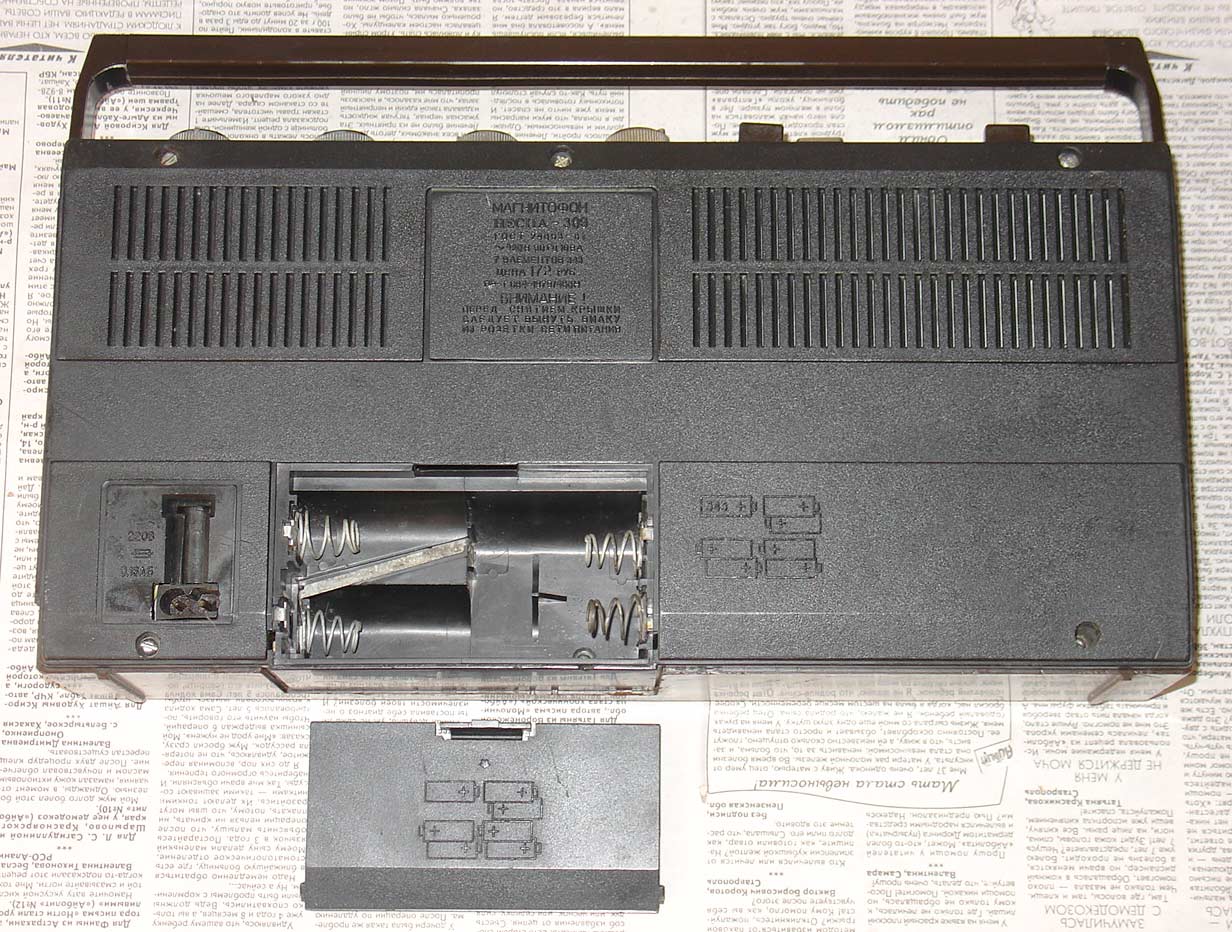 позволяет находить записи и определять расход ленты. Питание от семи элементов