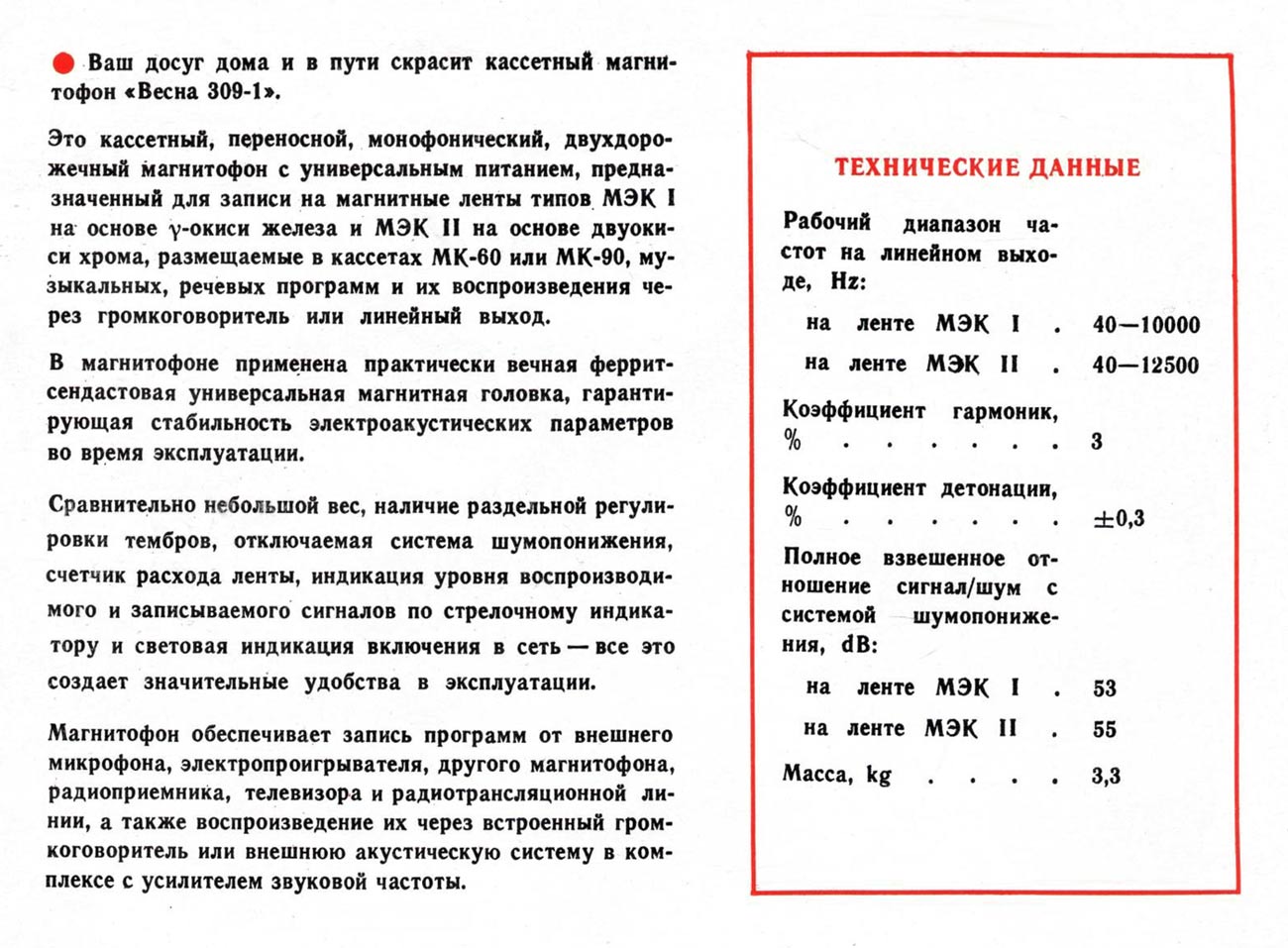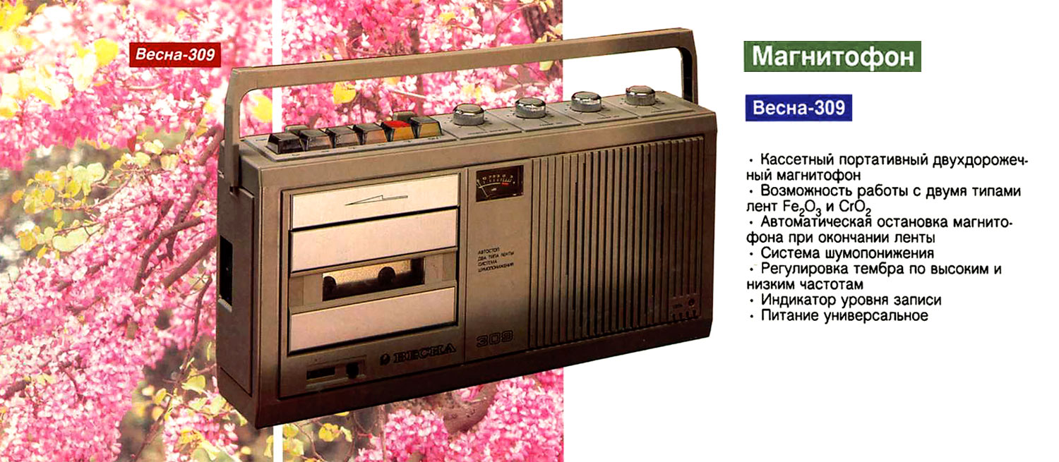 "Весна-309-2", а с 1992 года "Весна-309-3" и "Весна-309-4". Магнитофоны