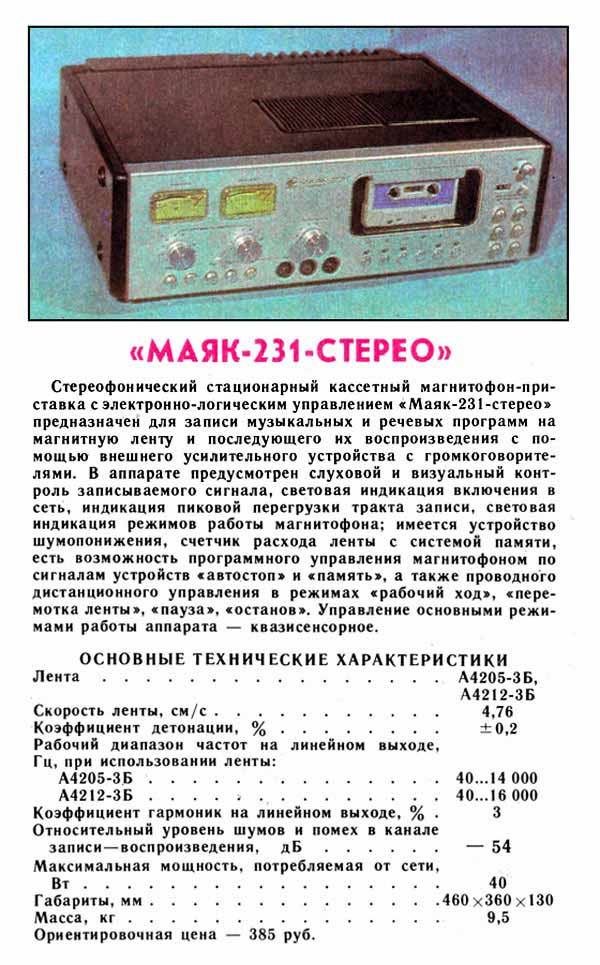 "Маяк-231-стерео" с 1983 года выпускалась Киевским радиозаводом "Маяк".