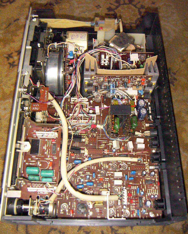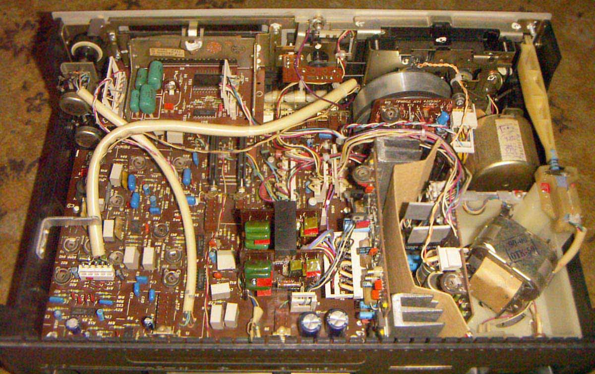 кассетоприёмник; люминесцентный индикатор контроля уровня записи или воспроизведения;
